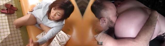 Slutty Asian stepmom carefully sits down on a stepson's cock. Rides her rump on a cock and gets jizz in her mouth