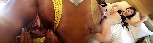 Lesbian stepsisters hide from dad, they gargle each other's pussies until they come, Lesbian femmes rub their clits together - Porn