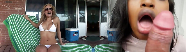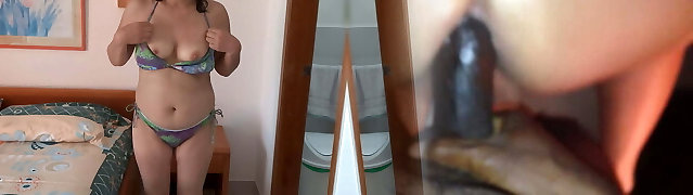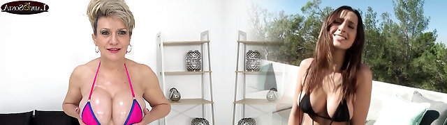 MILF in Bathing Suit Oils Big Boobs and Fat Ass