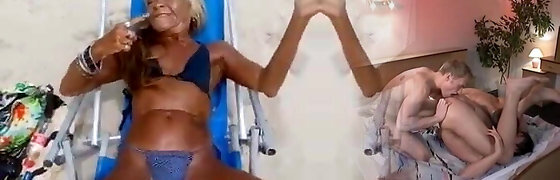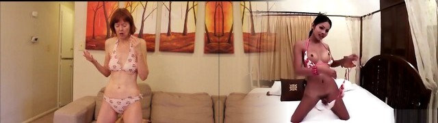 Busty bathing suit wearing teen seduced by nasty mature into 69 pussy eating