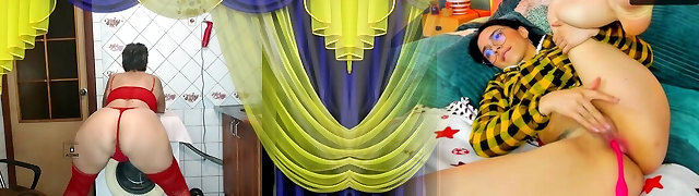 And again, exciting crimson lingerie on the delectable middle-aged body of the cheerful Lukerya, who flirts freely in the we