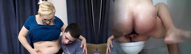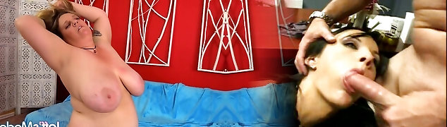 Fledgling younger man gets pleasured by chubby mature slut Gasha