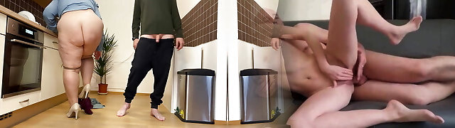 Cum Hungry Stepmother caught Him in Her swimsuit and stockings