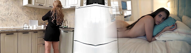 Busty stepmom gets an sudden Orgasm in the kitchen