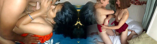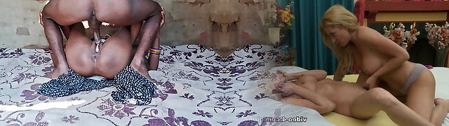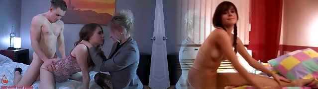 Happy stepmommy and her 18 year senior stepdaughter fuck in 69 pose and take their lovers' hard-ons!