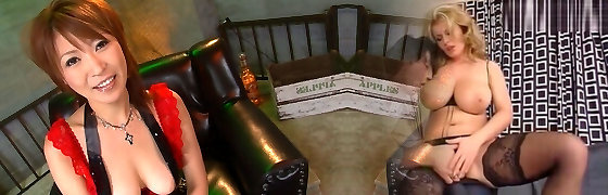 Japanese Cougar Jun Kusanagi fights a bunch of hungry cocks
