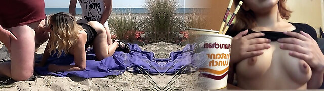 Creampie gangbang with utter strangers on a public beach