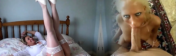 Amateur Blondie Mature Wife Presents Sex Games in Stockings and High Heels