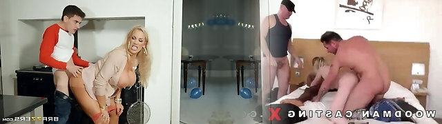 Mature plastic blonde Rebecca More gets a rough shag in the kitchen