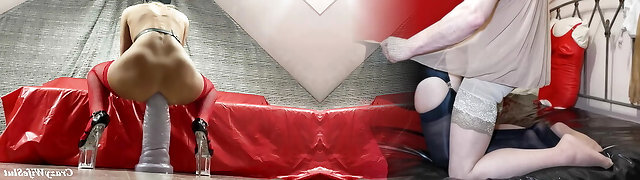 Older slut gets inserted by dildo machine