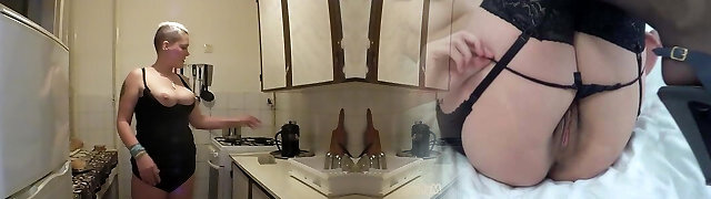 Mature housewife gets too kinky and masturbates on the kitchen counter