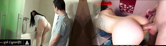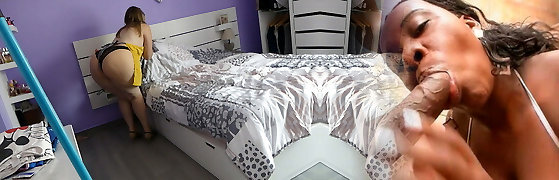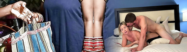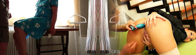 Slutty Maid caught service step son-in-law dick in bed after she clean the stairs