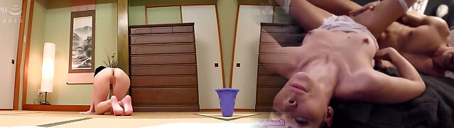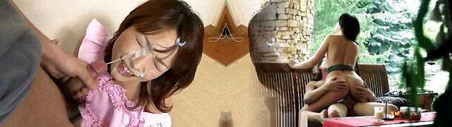 Japanese landlord gives his maid a yam-sized facial cumshot followed by the gardener