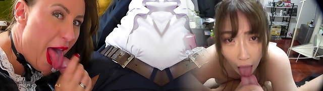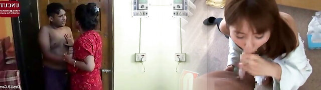 Japanese Mature Maid Gets Fucked by 2 room friends