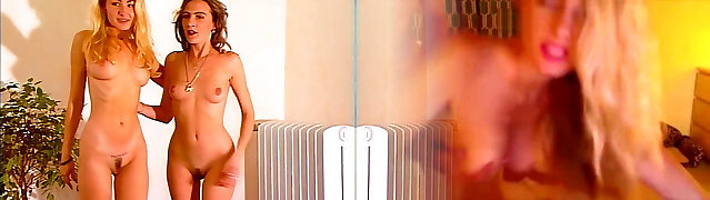 Puny blonde girl massaged and pleasured by two mature ladies