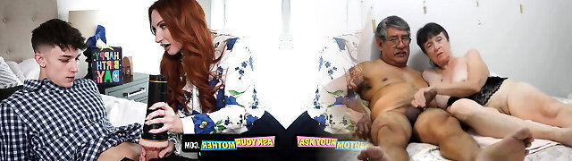 2 Redhead Bitches in One Bed. Stepmom and Girlfriend. Cool to Poke Two Redheads