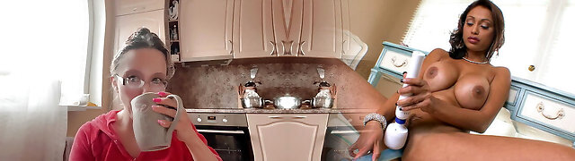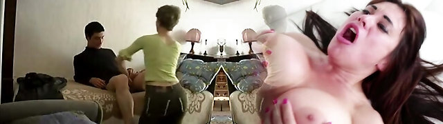 POV lesbian milf with huge tits and a young woman