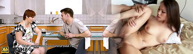 Son-in-law studies body of his very busty step-mother, she is pretending nothing is happening