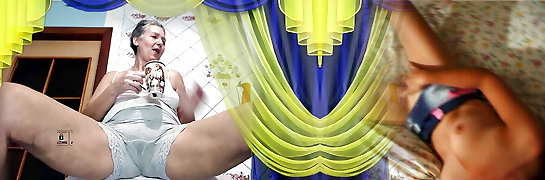 Old sexy Lukerya. Long pantaloons with lace cut into the puss. Bottom view. Hairy coochie and monstrous round ass.