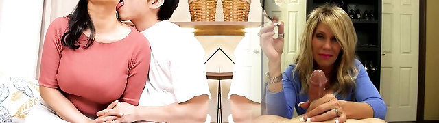 Beautiful big baps step mom helping stepson to masturbate to down heat