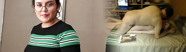 Curvy all-natural stepmom fucks slim stepson with large cock