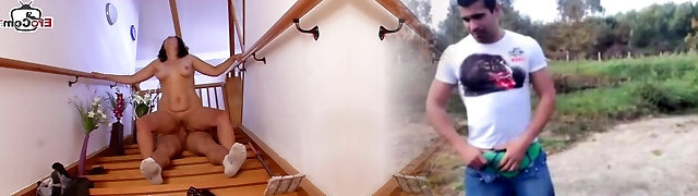 busty chubby step-mom naked on stairway