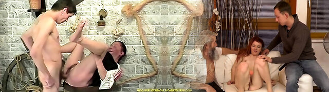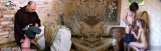 German Mature Teaches Shy Ugly Teenager Couple how to Fuck in 3Some