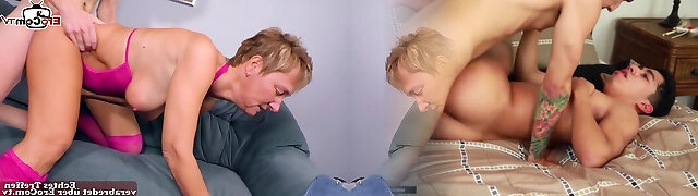 German mature senior mother woman seduced younger son guy
