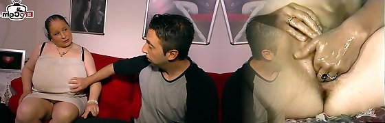 German ugly chubby lady next door in an unexperienced threesome – mmf