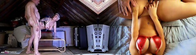 Real Mature amateur couple full flick penetrate upsidedown 69 doggy and boobs bouncing while riding stockings and pink lingerie