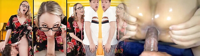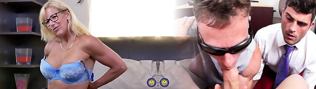 Blonde Mommy With Glasses Is Blowing Dick And Eating Cum Along With Getting Her Ass Smashed