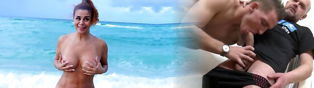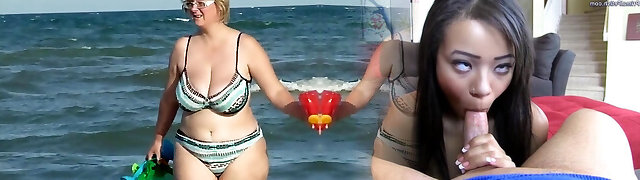 chubby mom stagged on the beach
