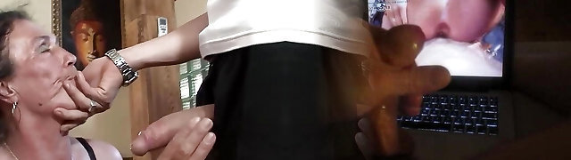 Mature step-mother helps me with my stiffy while I play game