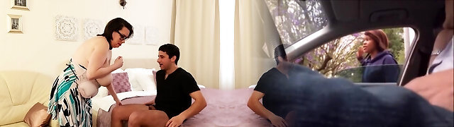 Son-in-law studies body of his very busty step-mother, she is pretending nothing is happening