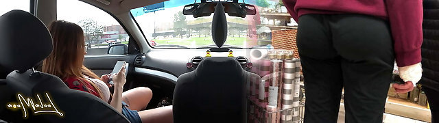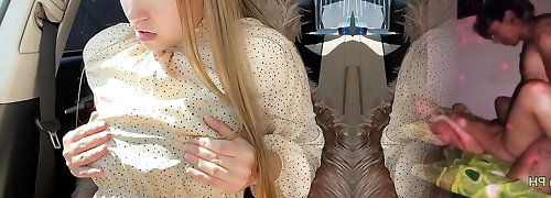 Sexy blonde mommy exposes her really big boobies in my car