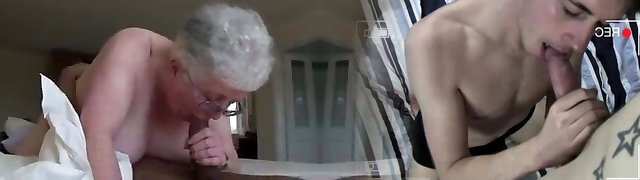 Busty grandmother takes it from both completes