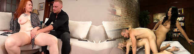 Ginger Buxom Milf called a Neighbor to Fuck while her husband is away. He tears up her in all poses