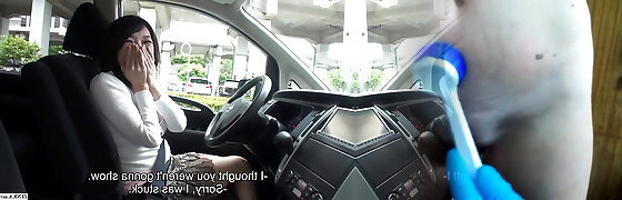 Mature Asian AV model gives a mitt job in the car