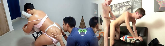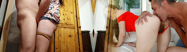 Mature stepmom without panties made a blowjob and gave assfuck to her stepson. homemade