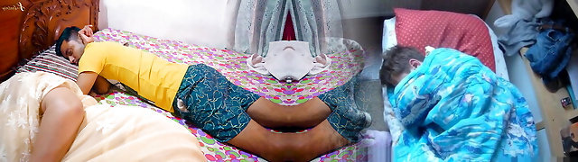 Japanese stepmom fucks her stepson right next to her resting hubby