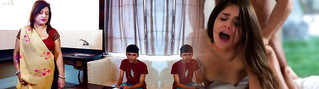 Sexy maa apne dono cherry 18+ bacho ko fuckfest karna sikhati hai