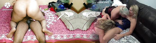 Older swinger wives share a darksome strapon