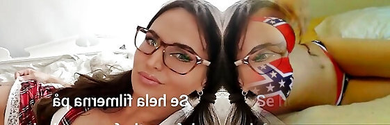 Two sluts in gorgeous lingerie enjoy swallowing delicious cum in
