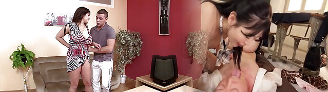 Two Big Tits MILFs seduce to FFM 3Some Sex by Huge Fuckpole Young Fellow