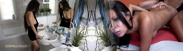 Filthy threesome game with super-fucking-hot gostosa girls stepsister receives cock in the ass from her perverted stepbrother with meaty cock