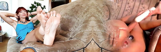 Mature redhead footjob
