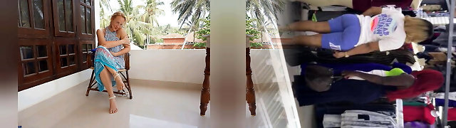 Cleaning the building in a micro thong bikini