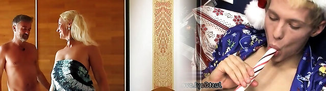 Two fellows share hot blonde old lady