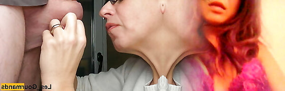 Mature MILF with Glasses Sucking Cock until Cum in Mouth - Amateur Hot MILF Wife Blowjob Pov