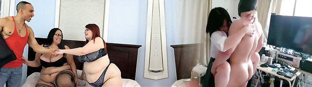 Dumpy and immense red haired mommy in glasses gets her mouth fucked by BBC
